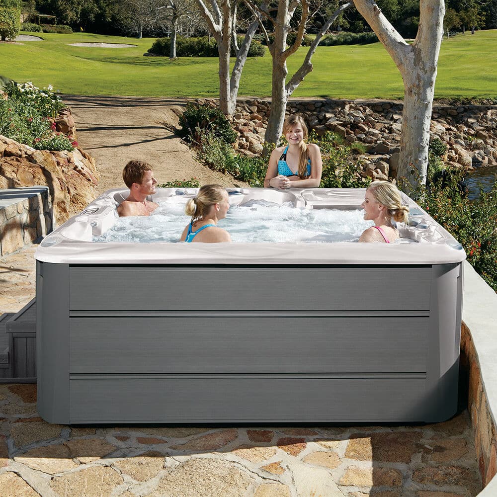 Sit beside a waterfall on a snowy day as you warm your toes with a vigorous hydromassage – it’s nice to come home to an Altamar™ hot tub. Invite loved ones to join you, too. The Sundance® Altamar is one of our friends and family spas, large enough to seat 5-6 adults, and offering more seat varieties than most other family spas. The Altamar spa features the popular lounge seat with wrist and calf jets, a total-body relaxation feature you won’t find in other family spas. For an effective back massage, sit back in the Accu-Stage™ therapy seat and let the jets work out the tension, from your neck to your lower spinal area. If you’re looking for a luxury family spa with high-performance features and versatility, the Altamar rises above the ordinary. Call Today to Order your Altamar 801-561-0679